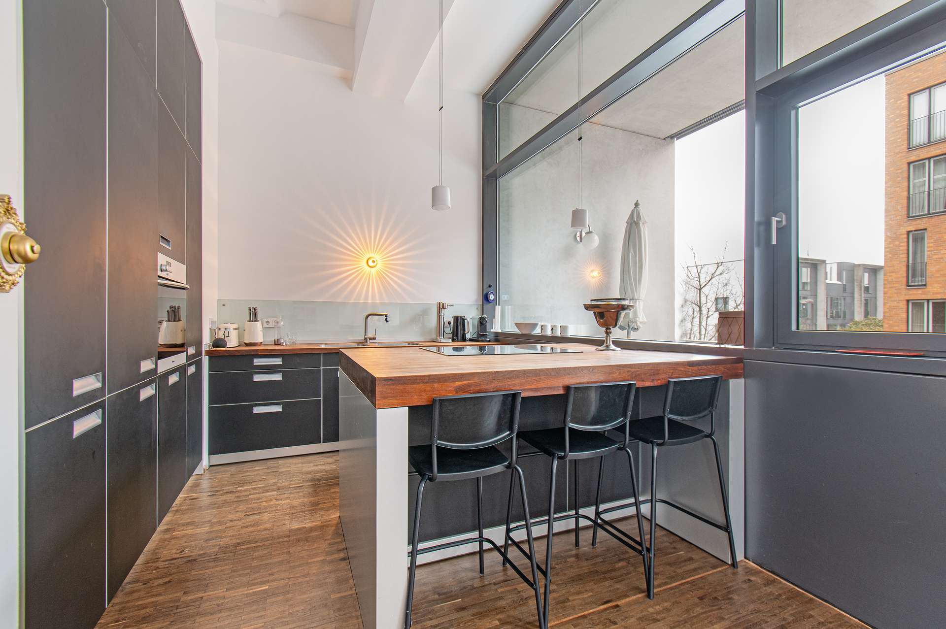Die angebotene Wohnung befindet sich in einer urbanen und äußerst gefragten Lage, nur wenige Gehminuten vom beliebten Isemarkt entfernt. Zahlreiche Restaurants, Cafés und Einkaufsmöglichkeiten prägen das lebendige Umfeld und unterstreichen die hohe Wohn- und Lebensqualität. Das moderne und architektonisch anspruchsvolle Wohngebäude überzeugt durch eine stilvolle Klinkerfassade sowie ein markantes Skydeck und wurde von den renommierten Architekten Bothe, Richter, Teherani umgestaltet. Die Immobilie gehört zu den begehrten Wohnensembles der Umgebung. Die Wohnung selbst besticht durch eine hochwertige Ausstattung und vermittelt bereits beim Betreten einen hervorragenden Ersteindruck. Durchdachte Blickachsen, raumhohe Fensterelemente und eine Belichtung von mehreren Seiten sorgen für außergewöhnlich helle und freundliche Wohnräume. Herzstück der Wohnung ist der großzügige Wohnbereich mit offener, hochwertig ausgestatteter Einbauküche. Das stilvolle Badezimmer verfügt über Tageslicht, eine Dampfdusche sowie hochwertige Sanitärausstattung. Ergänzend steht ein separates WC zur Verfügung. Ein praktischer Hauswirtschaftsraum innerhalb der Wohnung bietet Anschlüsse für Waschmaschine und Trockner. Ein Schiebeelement ermöglicht bei Bedarf eine flexible Abtrennung zwischen Flur und Wohnküche. Der ca. 13 m² große Balkon mit Südwest-Ausrichtung lädt zum Verweilen ein und bietet dank beweglicher Holzelemente sowohl Sicht- als auch Sonnenschutz. Ein Abstellraum im Keller sorgt für zusätzlichen Stauraum. Zur Wohnanlage gehören zudem ein privater Kinderspielplatz, ein Aufzug sowie – je nach Verfügbarkeit – Tiefgaragenstellplätze zur Miete (Warteliste).