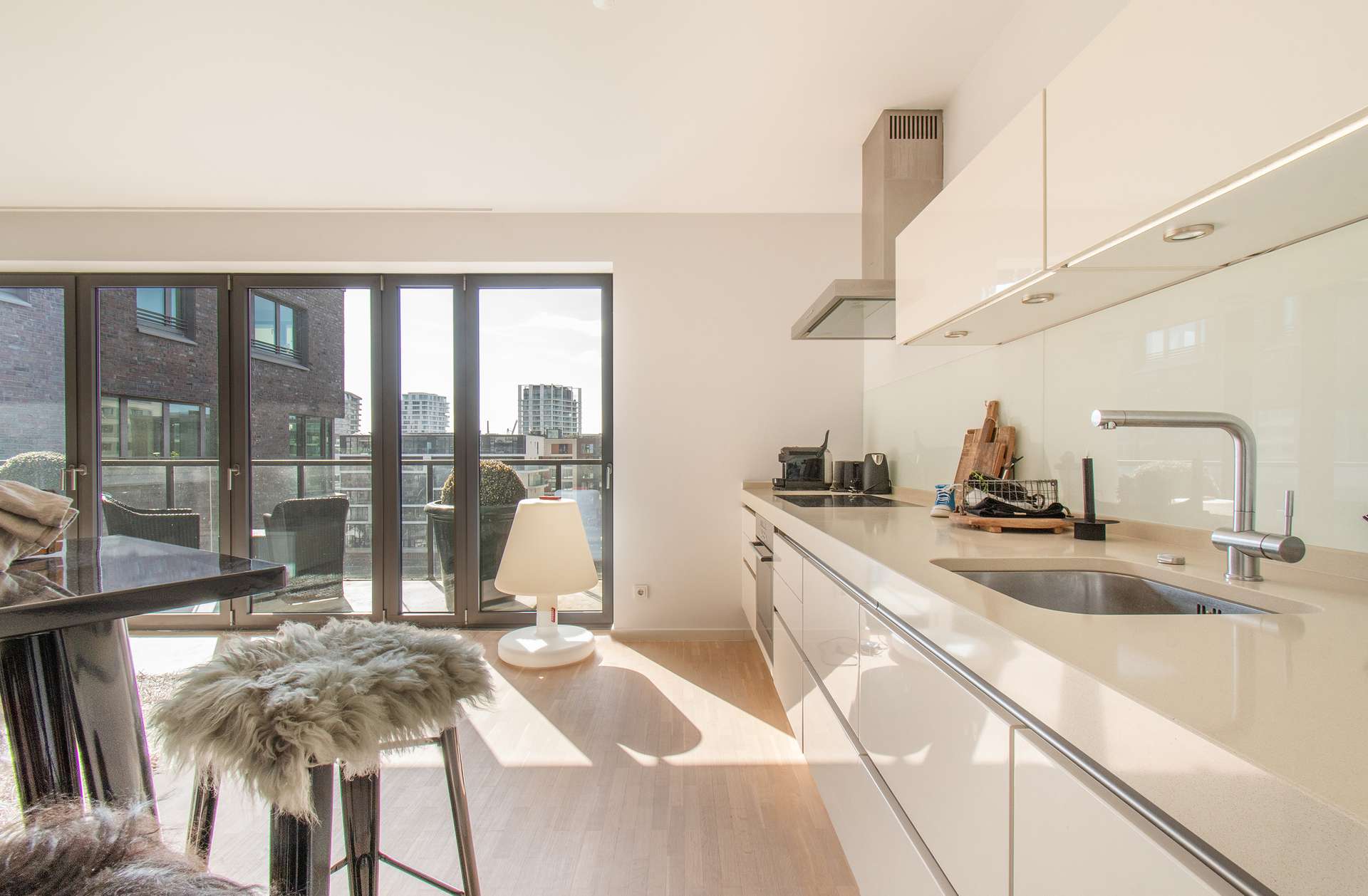 Diese außergewöhnliche Eigentumswohnung im 6. Obergeschoss mit Fahrstuhl präsentiert sich mit einem offenen, loftartigen Grundriss, der Großzügigkeit und urbane Eleganz perfekt vereint. Drei stilvoll geschnittene Räume und die offene Küche mit hochwertiger Einbauzeile schaffen ein modernes Zuhause, das Komfort und Design miteinander verbindet. Die Diele mit Video-Gegensprechanlage empfängt Sie und führt auf natürliche Weise in die einzelnen Wohnbereiche. Die Wohnräume sind mit edlem, geöltem Eichenparkett ausgelegt, das Wärme und Charakter vermittelt, während Bad und Gäste-WC durch geschmackvolle Fliesen Akzente setzen. Die klaren, weißen Wände bieten eine neutrale Basis, die Ihrer persönlichen Einrichtung den perfekten Rahmen gibt. Ein ganz besonderes Highlight ist der überdachte Süd-Balkon. Ob zum Frühstück in der Morgensonne oder für entspannte Stunden am Abend – hier genießen Sie Ihre private Auszeit mit Blick auf die Hafencity. Das Badezimmer ist modern gestaltet, verfügt über eine Badewanne, WC und praktischen Waschmaschinenanschluss, während ein separates Gäste-WC zusätzlichen Komfort bietet. Ein eigener Kellerraum rundet das Angebot ab und sorgt für zusätzlichen Stauraum. Diese Wohnung verkörpert urbanes Wohnen auf höchstem Niveau: loftartig, großzügig und perfekt für alle, die modernes Design, Funktionalität und eine exklusive Lage in der Hafencity schätzen.